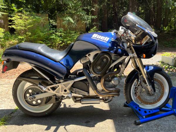 This is a hand made motorcycle with carbon fibre air cleaner cover, chain guard and rear fender. Hand laid fibreglass tank, fairing and front fender. Showa suspension. Marchenisi wheels.It has a hand welded frame. We went to Reno to pick this up from an elderly gentleman who was an aircraft engineer, and had purchased it from the original owner.The bike was originally red, and the gentleman I bought it from hated red and painted it blue . I have all receipts for work completed , recalls and accessories.