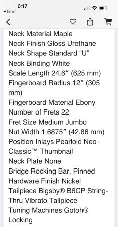 Players edition features include pinned rocking bar bridge, string thru bigsby, locking tuners, master tone instead of mud switch. Designed for players.