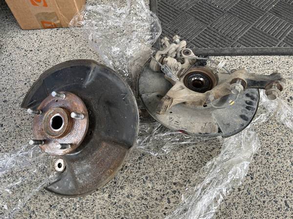 Selling my 8th gen Honda Civic Si front knuckles. Should fit Coupe and Sedan Si models from 2006 2007 2008 2009 2010 2011. Wheel bearing looks good, has lower ball joint, and sensor still attached. I bought these as replacements when I drilled out my old knuckles and wanted stock replacements. Sold the car so I no longer need them.
