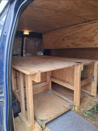 Custom-Built Camper Van Storage & Bed Frame! Plywood bed platform and storage system designed to fit a Ford E-150 (taken from a 2008 model)