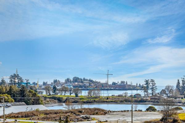 Luxury living in Admirals Landing best unit! SW corner penthouse 2 bed 2 bath OUTSTANDING panoramic water mountain forest city views and outlooks. This unit is on the market for the first time EVER since built in 2008. Modern upgrades throughout by award winning builders in a popular award-winning complex! Gourmet kitchen with granite counter tops, eating bar, pantry plus custom maple cabinets with SS appliances. The living room has a dynamic curved wall of windows overlooking wooded wonderland and ocean plus a feature corner fireplace. This is top floor corner unit with big sunny balcony secure underground parking and storage. Cherry wood wide plank flooring in all principal rooms. Large master suite with spa like ensuite. Everything is close, all amenities, nature parks, walking/ bike trails, golf course, seaside beaches, lakes, downtown and transportation.