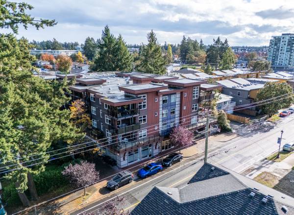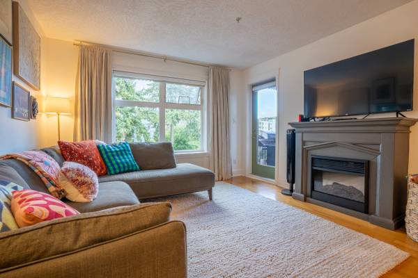 Bright and spacious 2-bedroom, 2-bath condo offering 855 sq. ft. of modern living in the heart of Langford Proper. Built in 2008, The Blackberry is a well-maintained, strata-managed building known for its walkable location and contemporary design. The open-concept layout features a large living/dining area with an electric fireplace and a west-facing balcony perfect for relaxing or entertaining. The kitchen includes stainless steel appliances, tile backsplash, and a functional island. The primary bedroom boasts a walk-in closet and 5-piece ensuite with dual sinks; the second bedroom suits guests or a home office. Additional highlights: in-suite laundry, 8-ft ceilings, and a 4-piece main bath. Secure parking, pet-friendly, and rentals permitted. Steps to shops, restaurants, parks, and transit—an excellent opportunity in one of Langford’s most desirable and growing neighbourhoods.