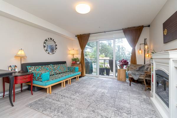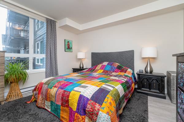 Come see this popular 2019 Thetis Lakeside complex. This large 1 bedroom plus den condo feels like a two bedroom with room to spare. Enjoy the open concept layout looking out on to the sunny south facing balcony. This quiet unit is full of upgrades such as a custom backsplash, quartz waterfall countertop, high-end LG appliances including a dishwasher and in-suite laundry. Located only minutes to Thetis Lake, the Galloping Goose and Highland Pacific Golf Course, this complex is ideal for the outdoor enthusiast. This pet-friendly building even has a pet walk area on the same floor. The large storage locker is also on the same floor for extra convenience. Rentals and kids welcome. Secure underground parking included. Visitor parking plus bike and kayak storage available. Call today for your private viewing.
