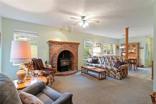 Lovely one-level home on a nicely sized, flat lot in beautiful Colwood! Great layout, on one floor w/3 nicely sized BR's, a large living room, dedicated dining space & kitchen w/skylight & newer, stainless appliances. Big, bonus laundry room w/lots of storage space, cupboards, counter & sink, plus a door to the patio, leading to backyard. Central vac, air exchange unit & newer HWTank. Bathroom fully updated in 2023 w/quartz counter, glass door shower w/rain head & wand & heated tile floor. Living rm has a fabulous gas stove, providing coziness & an alternate heat source (even in power out.) Backyard fully fenced, landscaped and easy to maintain. Shed has new door & even has power! Large front yard w/mature hedge & trees - a beautiful buffer to the outside world. Home repainted in 2020. Lots of parking including room for RV. Located minutes to Westshore Town Centre, Belmont Market & so much more. Lookout Lake & Esquimalt Lagoon await! Rare rancher, and a special one, so act quick!