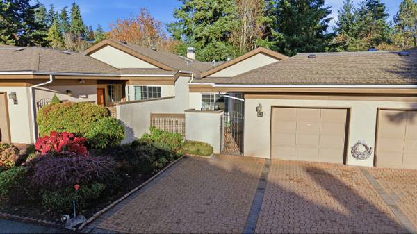 Fresh, bright, and updated 55+ townhome in Falcon Ridge. Enjoy main-level living with a garage and one bonus parking stall. The spacious, south-facing kitchen and family room open to your private courtyard. Hardwood flooring, vaulted ceilings, main-level laundry, and a spacious primary suite with new carpet, a walk-in closet, and a double-sink ensuite complete the main floor. The living room with a fireplace, the formal dining area, and the bedrooms sit on the quiet side, overlooking lush greenery. The bonus lower level offers two additional bedrooms, a full bathroom, a hobby/games room, ample storage, and a covered patio and yard. Residents enjoy a well-managed, pet-friendly, adult community with exceptional amenities, including an indoor pool, hot tub, sauna, clubhouse, library, billiards room, and RV/boat parking. Walkable access to Broadmead Village, parks, and trails, along with an easy commute to Downtown, Sidney, the airport, and BC Ferries, complete this impressive offering.