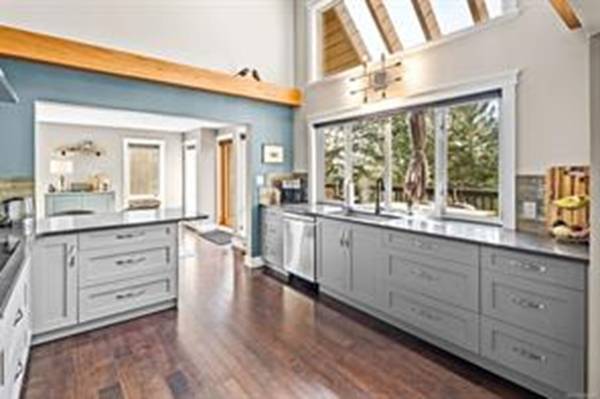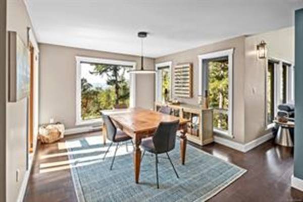 Spectacular West Coast Living-On Top of The Mountain - With an Incredible View! This stunning executive home offers a very sophisticated & contemporary design with the highest standard of craftsmanship throughout - the most serene setting, stunning ocean & mountain views beyond. Quality finishing's such as; quartz, clear edge grain fir, hardwoods, slate & glass. Vaulted ceilings & windows provide amazing perspectives of the surrounding tree-lines & ocean views. The kitchen is a chefs dream come true. The patio, upper deck & lower terrace connect the outside with the interior of the home perfectly. The lower level walkout could be easily suited. Great Separate Double Car Garage. Property is close to the Galloping Goose Trail which provides endless biking & hiking. Close proximity to shopping & conveniences of Western Communities. Set on 3.64 LCP exclusive use acres, this superb 3 bed & 4 bath home is your own private paradise. Very private & serene