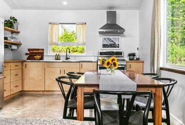 Tucked away on 2.62 acres of natural beauty, this 3-bedroom, 1-bath modern retreat in Jordan River offers the perfect West Coast escape. Thoughtfully designed with over 1,200 sq ft of open-concept living, the home features polished concrete floors with in-floor radiant heating, a cozy wood-burning stove, and large windows that frame serene forest and mountain views. The spacious kitchen and living area open to a covered patio—ideal for relaxing or entertaining. After a day surfing at nearby Jordan River or hiking the Juan de Fuca Trail, rinse off in your private outdoor shower. The property backs onto Second Creek and includes a greenhouse, orchard, and seasonal pond, creating a peaceful, self-sustaining lifestyle. Adventure and amenities are close at hand with local favourites like Shirley Delicious and Cold Shoulder Café just a short drive away. Whether you're looking for a full-time home or a weekend getaway, this is a rare opportunity to live immersed in nature on Vancouver Island.