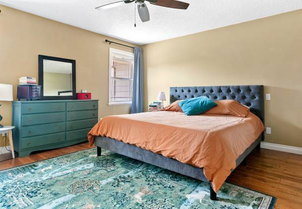 kids, pets, and summer lounging. Upstairs, the spacious primary bedroom includes a walk-in closet and a luxurious ensuite with
