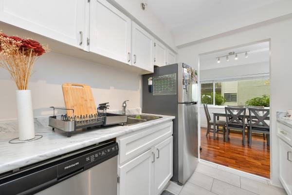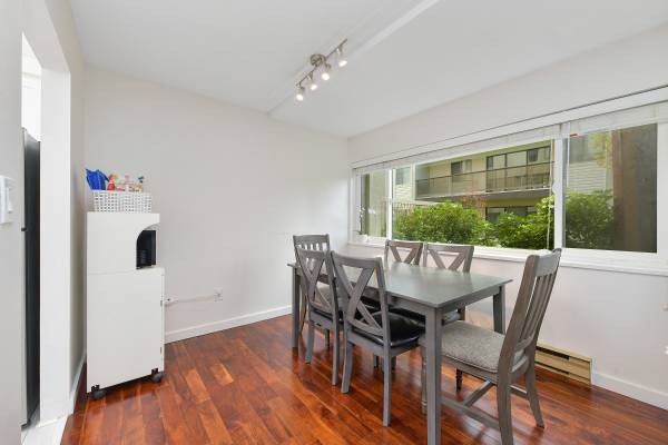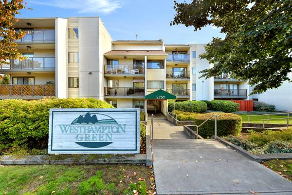 Bright 2 bedroom corner patio suite at "Westhampton Green" at the Quadra Village. Walk score of 95 with shops, cafe, restaurants and Fairways Market just outside plus easy access to downtown on foot, bike or transit. Nicely updated with wood and tile floors, thermo windows plus oversized fenced patio. Secured parking. Pet, bbq and rentals okay. Fantastic value for first home, downsize or investment property.