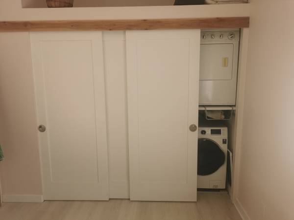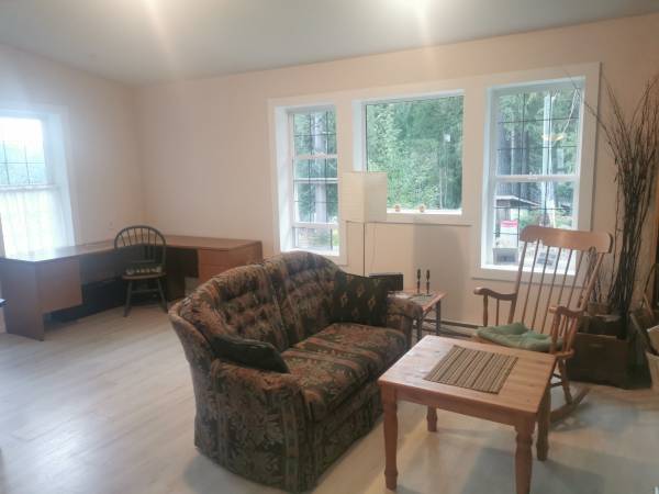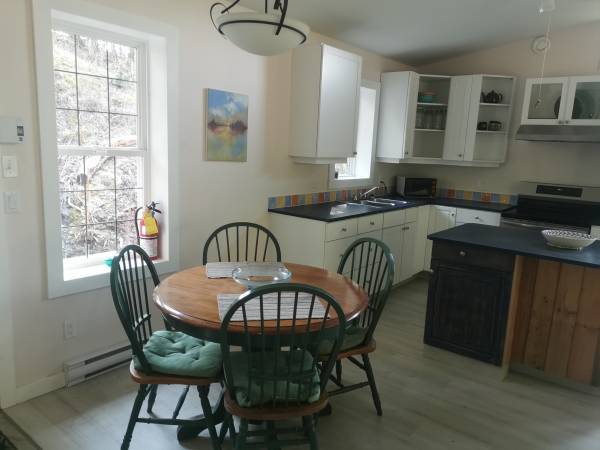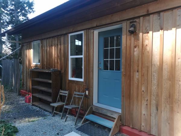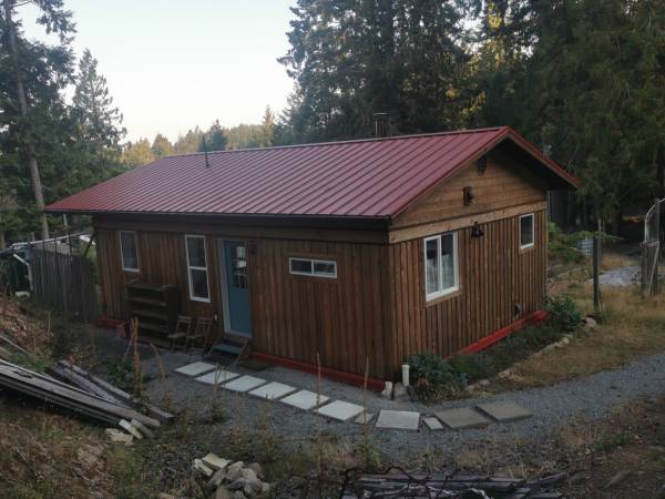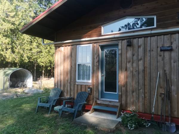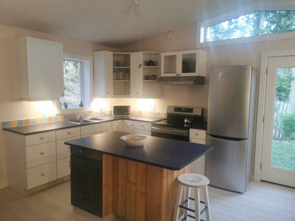 The like-new bright open-concept 638 sqft home has vaulted ceilings, wood stove, kitchen with island & induction stove, hidden laundry & additional storage in bdrm plus deep soaker tub in bthrm. New windows, insulation, plumbing and wiring to code.