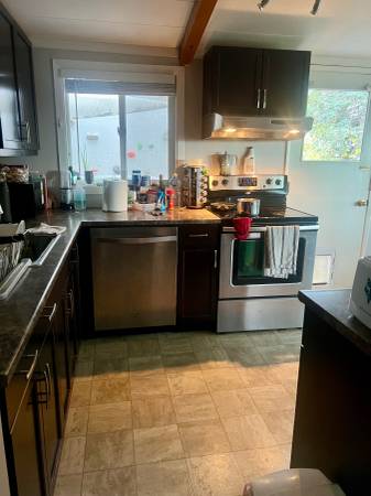 Main bedroom in a 3 bedroom house, Beautiful backyard and BBq patio. 2 guys looking for a suitable candidate to share the space. One in his 20’s, other early 30’s. All utilities and internet included. Hobbies of roommates include playing pool, skateboarding and playing guitar. Nice trails and hikes around. Both guys work full time and enjoy spending time at the deck with friends. Must love dogs (1) very well trained and (1) inside/outside cat. If interested pls contact Carol at show contact info
