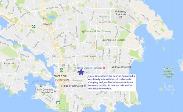 This home is in a fantastic location. You can walk within minutes to Douglas/Blanshards, or bike only a few blocks to the center of downtown. Have a car? No problem. There is residential parking all along both sides of the street. Love sports? Royal Athletic Park is next block. Central Park with public free tennis, basketball, and baseball facility is just 0.5 km away.