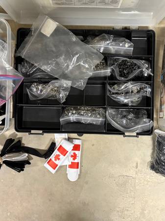 Sharpening skate holder, profiling bars and gauges, skate blades, couple qr holders, helmet screws, goalie toe and leg straps, lace tie downs, helmet chin straps, ear loops, etc etc