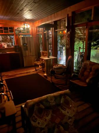 Our fully furnished L’il Lodge is actually Large on square footage, tidiness, cleanliness, and light, w oversized windows and french doors, set on a heavily forested acre.