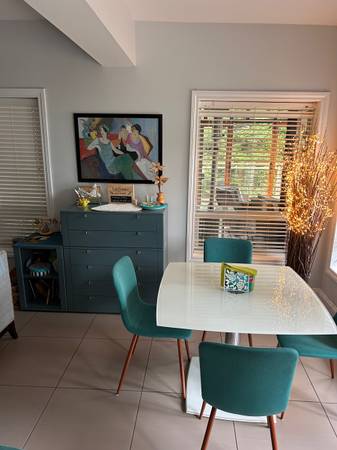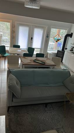 For the sports fans and flicks binders we have a 60” TV in family room with 3 seater couch and 2 occasional chairs, dining table, and breakfast nook w bar height stools.
