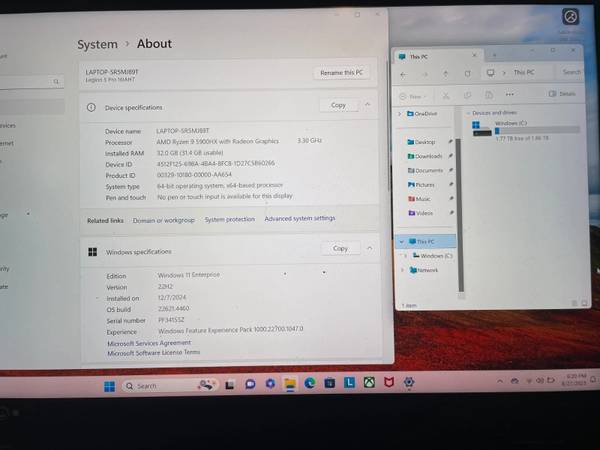 AMD Ryzen 9 5900HX 8 Cores 16 Threads 3.3GHz Base 4.6GHz Max 4MB L2 / 16MB L3 Cash DDR4-3200 Memory with 32 GB of Ram and 2 TB of storage.