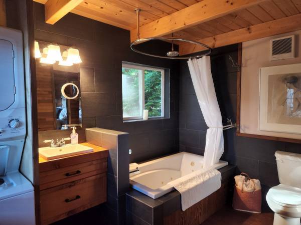 Private beautiful cabin on waterfront property 20 minutes south of Powell River in Stillwater. High speed internet & ocean view from every room. Queen Master with spa bath on main & open loft queen. Very private south facing beach with view of Texada Island. Fully equipped - Wood burning stove, BBQ on large deck. Epic Storm Watching! Stillwater Bluffs right at you door, Sunshine Coast Trail & Eldred Valley accessible via logging roads 5 minutes from cabin with many lakes. A great getaway from the city!