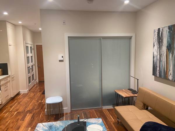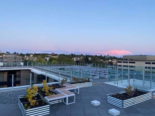 Welcome to your new fully furnished downtown apartment - this one bedroom unit boasts quartz counter tops, hardwood flooring, bathroom heated tile flooring, 10 foot ceilings, and a private balcony with ecograss, patio lighting /seating. Kitchen appliances are all European including a natural gas range followed by two dishwashers. Artwork is setup on the walls to go with Smart dimmer switches to enhance ambiance during the evening. High speed Wifi, electricity, and hot water all included. This building boasts the largest rooftop patio and garden in all of Victoria - your own garden plot is included.